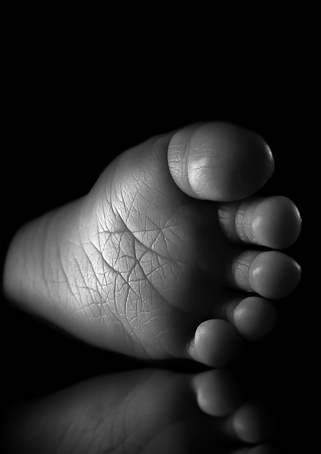 This image was made with care and with stillness, in the quiet of a moment that already knew it wouldn’t last. It is an intimate photograph — not dramatic, not loud, not trying to say too much. Just one small foot, held in light, against the dark.